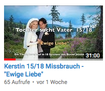 4/18 - „Schreitherapie!“ - Hier in der 4. Session bekommt Kerstin tiefe Schuldgefühle und will die 4jährige nicht annehmen, weil sie ja mitgemacht hat. Sie hasst sich dafür. Die Kleine mußte immer stark sein und brauchte niemand. Jetzt wendet sich Kerstin auch gegen sich selbst und will ihr inneres Kind wegschicken. Der Therapeut zeigt ihr auf, dass die kleine Kerstin völlig alleine ist. Ihr Vater soll sie annehmen, denn das ist seine Aufgabe. Kerstin macht "Schreitherapie": Sie fängt an sich zu wehren, schreit ihren Stiefvater und ihre Mutter an, bis das innere Bild kippt und zu einer liebevollen Mama wird, die sie beschützt. Doch der Vater ist noch schwach...