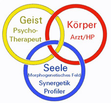 Eingangsdiagnose - beginnt somit immer mit einem Profiling .... Die anschließende Begleitung in den Veränderungsprozessen wird ebenfalls vom Synergetik Profiler angeboten. Informationsprofile in komplexen lebendigen Systemen bestehen i.d.R. aus 6 bis 8 Parameter - selbstähnlich wie beim Schwarmverhalten beobachtet ein Vogel 6 - 8 seiner Nachbarn - präzise Muster entstehen. Diese 6 - 8 Faktoren ermittelt auch der kriminologische Profiler, dessen Sichtweise wir dem Profiling unterlegten. Übertragen auf Krankheitsbilder bedeutet dies: Der Synergetik Profiler ersurft in der Innenwelt des Klienten ein zusammenhängendes neuronales Muster (Energiebilder), daß bei Auflösung durch Selbstorganisation das Krankheits-Symptom ebenfalls auflösen kann. Der Prozess der Auflösung entspricht dann einer Heilbehandlung. Diese Dienstleistung erbringt der qualifizierte Beruf des Synergetik Profiler. Die Informationsaufarbeitung geschieht in der Software des Gehirns, in den inneren Bilder der neuronalen Strukturen und nicht auf der Mentalebene. Dies ist ein sehr wichtiger Unterschied. Klienten bekommen die Sitzung auf DVD aufgezeichnet. |