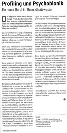 Profiling: Die hohe Kunst der Aufdeckung Ein Bericht aus der Zeitschrift "Innenweltreisen" aus dem Jahre 2004 von Roswitha Schneider pdf-Datei Profiler 6 - Dezember 2005 - Sessions mit Brustkrebs-Klientin Ilka zur Einreichung bei Gericht Profiler 7 - Mai 2006Vergleich zwischen Profiler und Synergetik Profiler von Bernd Joschko im Aug.2008 Gesundheit auch für kranke Menschen